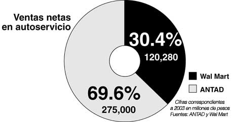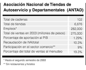 Las tiendas de autoservicio ya representan la mitad del comercio detallista en México. La Asociación Nacional de Tiendas de Autoservicio y Departamentales (ANTAD) registra 102 cadenas especializadas, con la notable ausencia de Wal Mart, que se estima controla casi un tercio de ese mercado en el país. Hay en este sector una notable dualidad, puesto que coexisten alrededor de 700 mil establecimientos pequeños. La