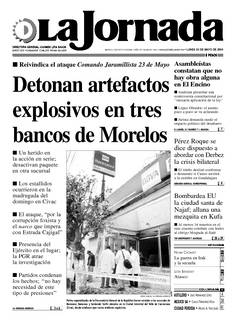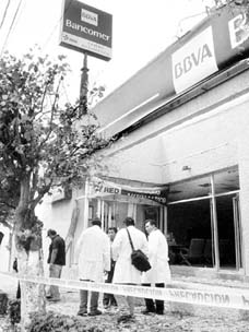 Peritos especializados de la Procuraduría General de la República fueron enviados a las sucursales de Bancomer, Banamex y Santander Serfin ubicadas en la Ciudad Industrial del Valle de Cuernavaca (Civac), donde estallaron ayer varios artefactos explosivos FOTO JORGE GARCIA/ LA JORNADA MORELOS