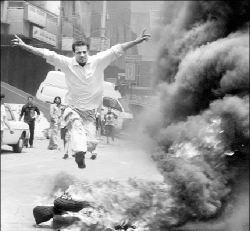 ENFRENTAMIENTOS EN BEIRUT  Libaneses protestaron ayer contra el alza de los precios de la gasolina y organizaron demostraciones en los suburbios de Beirut, encendiendo llantas y lanzando piedras a la policía, que disparó contra los manifestantes y mató a tres durante una de las protestas FOTO AFP