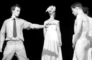 Robert Wolfram personifica a Claus Graf Schenk von Stauffenberg, mientras su colega Timo Ploog encarna a un soldado raso en la obra Stauffenberg. La tragedia del 20 de julio de 1944, que estrenará la trouppe alemana DiVision 20-7 este domingo en el Teatro Schiller de Berlín. La amplia expectativa que ha despertado esta obra de David Sternbach es una honda reflexión acerca de los sentimientos de culpa y conciliación de la sociedad alemana en torno al tema del fascismo. En este caso la anécdota se centra en el intento de asesinato de Hitler a manos de Stauffenberg FOTO AFP