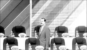 EL ANFITRION  El presidente Vicente Fox momentos antes del inicio de la tercera cumbre de jefes de Estado y de gobierno de América Latina, el Caribe y la Unión Europea, realizada en el Hospicio Cabañas FOTO CARLOS RAMOS MAMAHUA