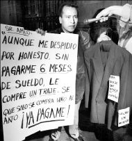Un ex trabajador de la Comisión del Agua en el Distrito Federal se manifiesta afuera de las oficinas del jefe de Gobierno en protesta por su despido -injustificado, según él- tras denunciar hechos de corrupción en esa dependencia FOTO GUILLERMO SOLOGUREN