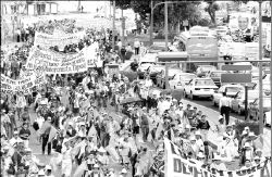 manifestantes, respaldados por su dirigente nacional, Aquiles Córdoba
