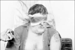 aparece con los ojos vendados, decir su nombre, su nacionalidad y su profesión
