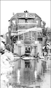 ANEGAMIENTOS EN NEZA  Vecinos y trabajadores ferrocarrileros ponen una barricada para evitar que se filtren las aguas negras del canal La Compañía a las casas de Ciudad Nezahualcóyotl FOTO ALFREDO DOMINGUEZ