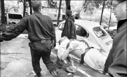 ACCION DESESPERADA  Socorristas del Escuadrón de Rescate y Urgencias Médicas trasladan a un hombre que se prendió fuego para evitar ser desalojado del departamento que habita, en Tlatelolco FOTO ALFREDO DOMINGUEZ