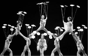 EL LEON CHINO EN MOSCU  Artistas del circo chino León de Oro durante la realización de su espectáculo con platos en Moscú. El arte circense en China se remonta a unos dos mil años y la formación de los futuros cirqueros comienza a partir de los tres años de edad para desarrollar el talento de los 10 a los 12 años FOTO REUTERS