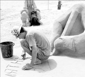 Un artista firma su obra en el segundo Festival Internacional de Esculturas de Arena, celebrado en la playa de Kiev, Ucrania FOTO AFP