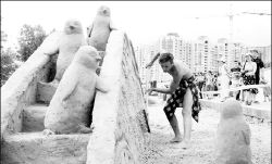 ARTE EN LA ARENA  Un escultor ultima detalles de su creación hecha con arena durante el segundo Festival Internacional de Esculturas de Arena que se realizó en Kiev, Ucrania. Participaron más de 30 jóvenes artistas FOTO AFP