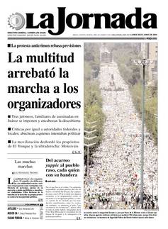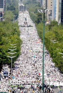 La marcha contra la inseguridad durante su paso por Paseo de la Reforma rumbo al Zócalo capitalino. Algunas agencias noticiosas calcularon que acudieron 250 mil personas, aunque hubo diversas estimaciones. La Secretaría de Seguridad Pública del Distrito Federal reportó saldo blanco FOTO MARIA LUISA SEVERIANO