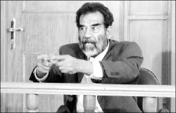 la barba cana y agitando el dedo con furia, Saddam Hussein sigue siendo