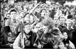ROSKILDE 2004  Un grupo de jóvenes disfruta la actuación de la banda metalera danesa Mnemic, durante la inauguración del Festival Roskilde 2004, en Dinamarca. Se espera que más de 70 mil personas provenientes de toda Europa se den cita en esta ciudad durante los cuatro días que dura el encuentro musical FOTO AFP