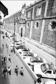 Espacio utilizado como estacionamiento por vehículos de la SSP capitalina, frente al antiguo colegio FOTO JOSE CARLO GONZALEZ
