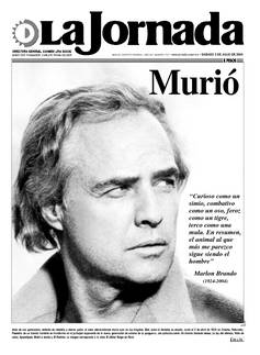 Idolo de una generación, símbolo de rebeldía y eterno galán, el actor estadunidense murió ayer en Los Angeles. Bud, como lo llamaba su abuela, nació el 3 de abril de 1924 en Omaha, Nebraska. Poseedor de un talento increíble se transformó en el principal exponente de la nueva generación de actores de la posguerra, con películas como Un tranvía llamado deseo, La ley del silencio, Nido de ratas, Apocalipsis, Motín a bordo y El Padrino. La imagen corresponde a la cinta El último Tango en París FOTO AFP