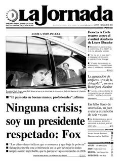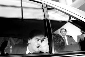 El presidente Vicente Fox y su esposa Marta Sahagún se besan en su vehículo luego de un encuentro en Brasilia con integrantes de la Asociación Empresarial Mexicana en Brasil FOTO AFP