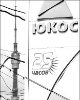Las autoridades rusas empezaron a congelar las cuentas bancarias del consorcio Yukos. Foto del logotipo de la petrolera frente a la torre de la televisora Ostankino en Moscú FOTO AFP
