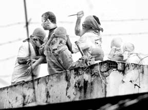 La revuelta en el presidio Helio Gomes causó la muerte de un recluso y 15 heridos tras la intervención policial. Los incidentes comenzaron la noche del sábado con un intento de fuga, cuando unos 200 internos tomaron cinco rehenes. En la imagen, uno de ellos es agredido en un tejado FOTO REUTERS