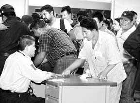 Autoridades migratorias reciben en el aeropuerto de la ciudad de México a 138 mexicanos que fueron repatriados desde Tucson, Arizona FOTO MARIA MELENDREZ