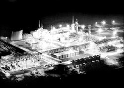 PROXIMO REFERENDO SOBRE GAS BOLIVIANO  Vista nocturna de la planta de gas de la brasileña Petrobras, en San Antonio, departamento de Tarija, en Bolivia. Petrobras controla los yacimientos de San Alberto y San Antonio en el sur boliviano, pero unas 20 compañías de Europa, Asia y América controlan la riqueza gasífera de ese país, que es la segunda más importante de la región, pues equivale a 0.8 por ciento de la reserva mundial del energético. El 18 de julio se realizará un referendo para determinar una eventual nacionalización de los hidrocarburos bolivianos FOTO AFP