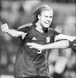 el capitán Roberto Ayala a rematar con la cabeza para vencer el