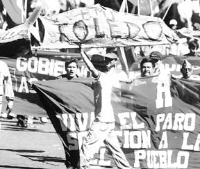 El paro nacional de trabajadores contra la política económica y social del gobierno de Alejandro Toledo se cumplió parcialmente con marchas en varias ciudades. El nivel de respaldo del mandatario apenas alcanza 5 por ciento. La imagen, en Arequipa FOTO REUTERS