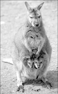 ATISBANDO AL MUNDO  Una wallaby del zoológico de Thoiry, en Francia, dio a luz a una pareja de gemelos. El hecho, que es considerado raro por expertos, pasó hace cinco meses, sin embargo las crías comenzaron a asomar las cabezas de la bolsa de su madre sólo hace unos pocos días FOTO AFP