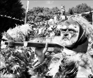 Mineros de la ciudad de Emboscada, a 60 kilómetros de la capital paraguaya, visten disfraces confeccionados con plumas de aves en honor a su santo patrono, San Francisco Solano. Cada año recuerdan a indígenas de la tribu guaicurues, quienes acechaban a colonizadores españoles en el río Paraguay FOTO AFP