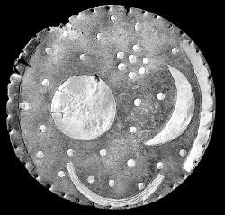 REPRESENTACION DEL FIRMAMENTO  El enigmático disco estelar de Nebra, que data de hace 3 mil 600 años y es la más antigua representación del firmamento conocida hasta ahora, fue presentado ayer en Alemania por primera vez desde que fue restaurado. El disco muestra la visión del cielo y del universo que se tenía en la Edad de Bronce, y fue hallado por dos profanadores de tumbas a 270 kilómetros de Berlín FOTO AFP