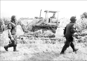 la destrucción de los cultivos continuó, al tiempo que funcionarios