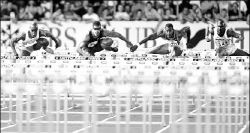 Competencia varonil de 110 metros vallas, en la Liga de Oro de Zurich FOTO