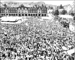Varios miles de perredistas se manifestaron en la explanada de la plaza cívica de Toluca ante la falta de respuesta de los gobiernos federal y estatal para solucionar los problemas que existen en el oriente de la entidad en materia de salud, educación, seguridad, servicios y vivienda, entre otros puntos; el mitin fue encabezado por el diputado federal Héctor Bautista López FOTO MARIO VAZQUEZ DE LA TORRE /AGENCIA MVT