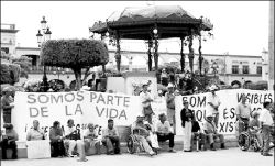 Aspecto de la manifestación de minusválidos y ancianos en Santiago