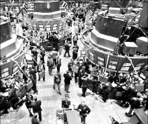 Piso de remates de la bolsa de Nueva York, donde las acciones se hundieron ayer jueves, en una sesión marcada por el precio récord del petróleo y un decepcionante pronóstico del gigante tecnológico Hewlett-Packard, que llevaron al índice tecnológico Nasdaq a su cierre más bajo en el año, al retroceder 1.69 por ciento y cerrar en mil 752.49 puntos. El promedio industrial Dow Jones perdió 1.24 por ciento FOTO AFP