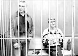 El empresario petrolero ruso y presidente de Yukos, Mikhail Khodorkovsky, con su socio Platón Lebedev, en una corte de Moscú. El gobierno acusa a los ex ejecutivos de evasión fiscal y fraude, delitos por los cuales podrían ser condenados a más de 10 años de prisión FOTO REUTERS