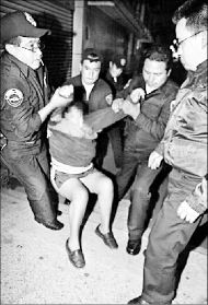 de cuatro policías. No obstante que no se le vio acercarse a ningún