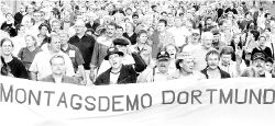 Berlin, 16 de agosto. Cerca de 100 mil personas se manifestaron este lunes en unas 90 ciudades de Alemania, entre ellas Berlín, para protestar por las reformas al sistema laboral y el recorte a las prestaciones sociales dispuestas por el gobierno del canciller federal Gerhard Schroeder.
