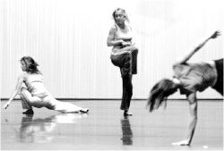 Cinco damas bailan en escena. El estilo emblemático de Vandekeybus: damas con rodilleras en giros vertiginosos, en vuelos alucinógenos, sus cuerpos volando en mil pedazos, sus vísceras y músculos en estallido. Bailan: sus brazos son aspas, sus piernas colibríes, sus muslos terremotos, sus nalgas licuadoras, sus ojos linternas brillantísimas. Pelos colibríes, brazos licuadoras, muslos linternas, ojos aspas, labios mayores y menores tintineando.