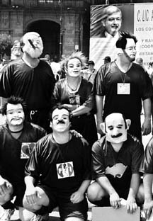 El PRD capitalino organizó una "cáscara por la esperanza" entre los equipos Fuerzas Democráticas y Fuerzas Oscuras, en la Plaza de la Constitución. En la imagen, astros del segundo club FOTO MARIA LUISA SEVERIANO