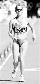 La rusa Ivanova, campeona del orbe en Edmonton 2001 y segunda mejor marca de la temporada, alcanzó a la helena en una subida cuando restaba un kilómetro para la meta, pero la griega volvió a escaparse de nuevo a la entrada del estadio.