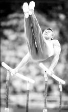 En la competencia masculina de barras paralelas, el ucraniano Valeri Goncharov ganó el oro, escoltado por el japonés Hiroyuki Tomita (plata) y el chino Li Xiaopeng (bronce).