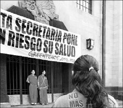 Frente a ello, la organización hizo ayer una toma simbólica de las instalaciones de la dependencia, donde a partir de las siete de la mañana se encadenaron dos activistas. Asimismo, colocaron una manta con la leyenda: "esta dependencia pone en riesgo la salud". Ahí, esperaron que los recibiera algún funcionario para plantear su inconformidad por la comercialización de los productos modificados genéticamente.