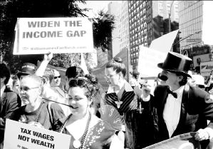 Obreros, ambientalistas, artistas e inmigrantes participaron en la marcha de más de 200 mil personas que ocuparon las principales calles neoyorquinas. Varios cubrieron cajas con la bandera estadunidense para semejar ataúdes de los soldados muertos en Irak FOTO REUTERS