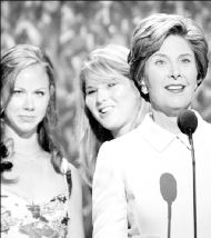 Con el contexto establecido por Schwarzenneger, Laura Bush, la primera dama estadunidense, pudo dedicarse a describir el lado sensible y dulce de su marido.