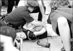 una banqueta. En el arresto de cien activistas al lado de Unión