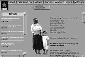 LA INTERNET ZAPATISTA es variopinta, y en ella puede hallarse centros de información en alemán con noticias de última hora. Un caso es el de chiapas.ch, sostenida por una organización de Lausana, Suiza, que el 27 de agosto organizó una "fiesta zapatista" y que mantiene un impresionante sistema de noticias, artículos y actividades, en un marco bien diseñado, aunque tal vez demasiado rígido para los gustos tropicales. Hay, en contraste, sitios llenos de polvo, como Acción zapatista, cuya más reciente revisión data de noviembre de 1999.