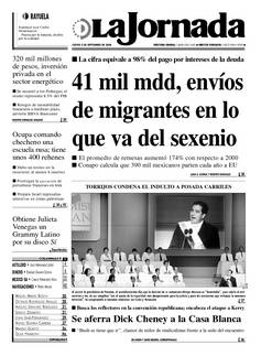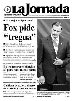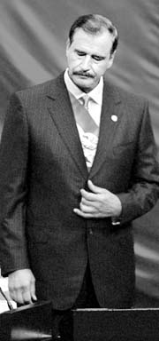 Vicente Fox Quesada durante su cuarto Informe de gobierno en el recinto legislativo de San Lázaro, que duró una hora con 17 minutos y fue interrumpido en 23 ocasiones; en 12 de ellas tuvo que intervenir el presidente de la mesa directiva, Manlio Fabio Beltrones FOTO MARCO PELAEZ