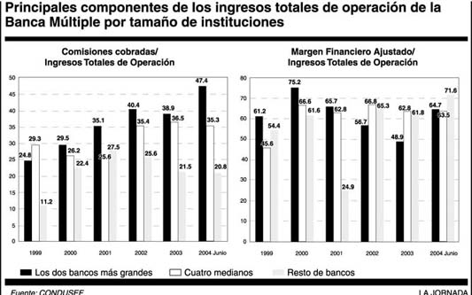 del margen financiero de la banca se ha elevado de 33 por ciento en 2000