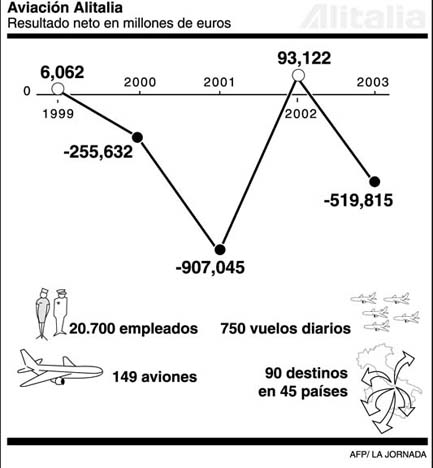 las mismas fuentes. El presidente de Alitalia, Giancarlo Cimoli, estableció