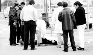Un cuentahabiente murió cuando tres sujetos armados intentaron asaltar una camioneta de valores y a una sucursal de Banorte, en el centro comercial Los Sauces, quedando en el fuego cruzado con policías FOTO MARIO VAZQUEZ DE LA TORRE/AGENCIA MVT
