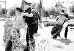 LA LEY MARCELO EN ACCION  Adolescentes que se dedicaban a pedir dinero a automovilistas en el cruce de Paseo de la Reforma y Eje 1 Norte fueron detenidos por agentes de la Secretaría de Seguridad Pública FOTO ALFREDO DOMINGUEZ